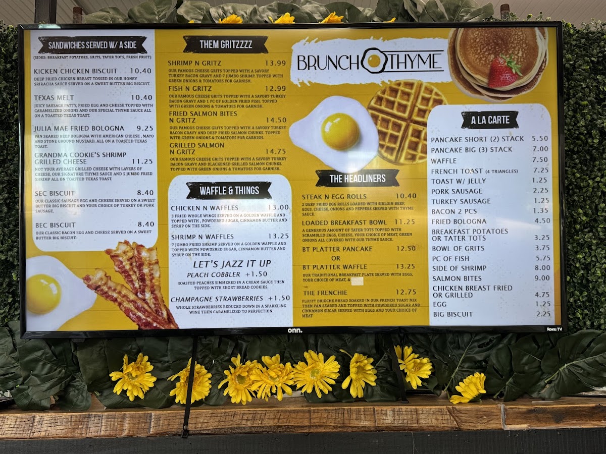 The waffles are a must-try, crispy on the outside and fluffy inside, paired impeccably with rich, runny yolks. The atmosphere, while cozy, may feel a bit crowded, as this beloved spot attracts food lovers. Whether you indulge in their homemade biscuits or delight in fresh-made juices, every bite reflects Southern comfort. Brunch Thyme is truly a remarkable destination for brunch enthusiasts who seek both flavor and satisfaction.